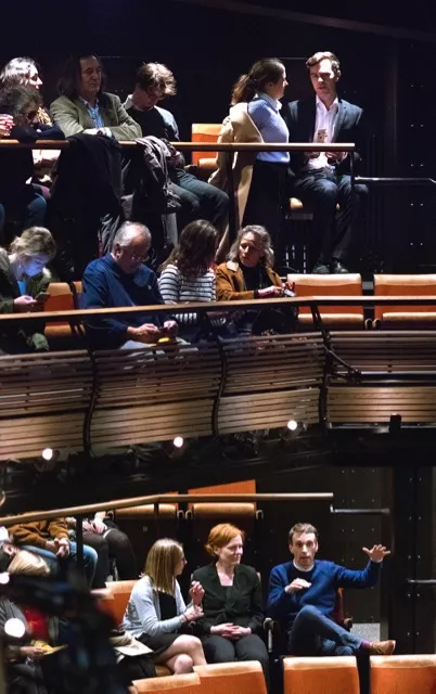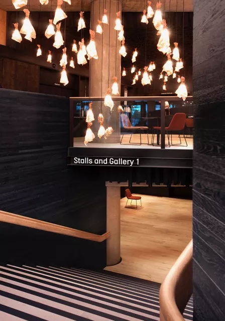 Served by a single long bar and lit by 500 bespoke copper light fittings (designed by Haworth Tompkins) the foyer functions as a public space throughout the day and evening.