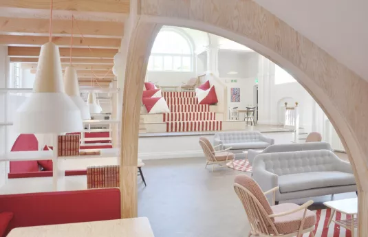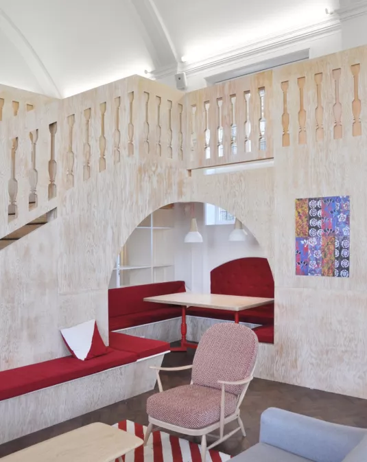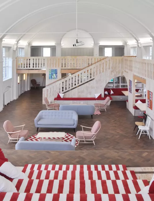 The Arts & Crafts hall had a new timber mezzanine and staircase inserted to create a diverse range of spaces for individual and group study as well as assembly and performance.