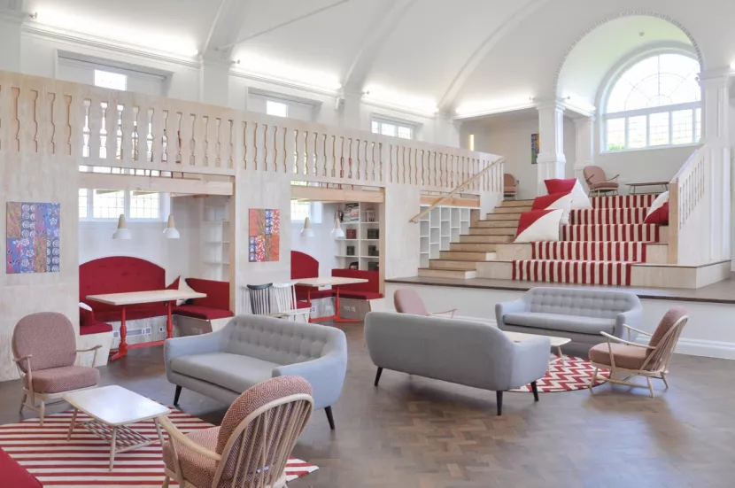 The Grade 2 listed Keswick Hall was redeveloped to provide an expansive learning commons to include a common room, kitchen and study rooms.