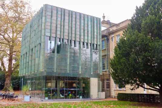 The minimal structure rests on a delicately-designed steel frame which enables the design to make visual connections with the existing historic façade and gardens.