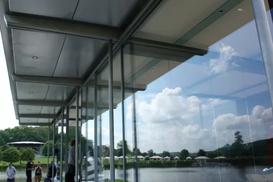 This island pavilion is situated within the picturesque Wormsley Estate, adjacent to the Garsington Opera pavilion.