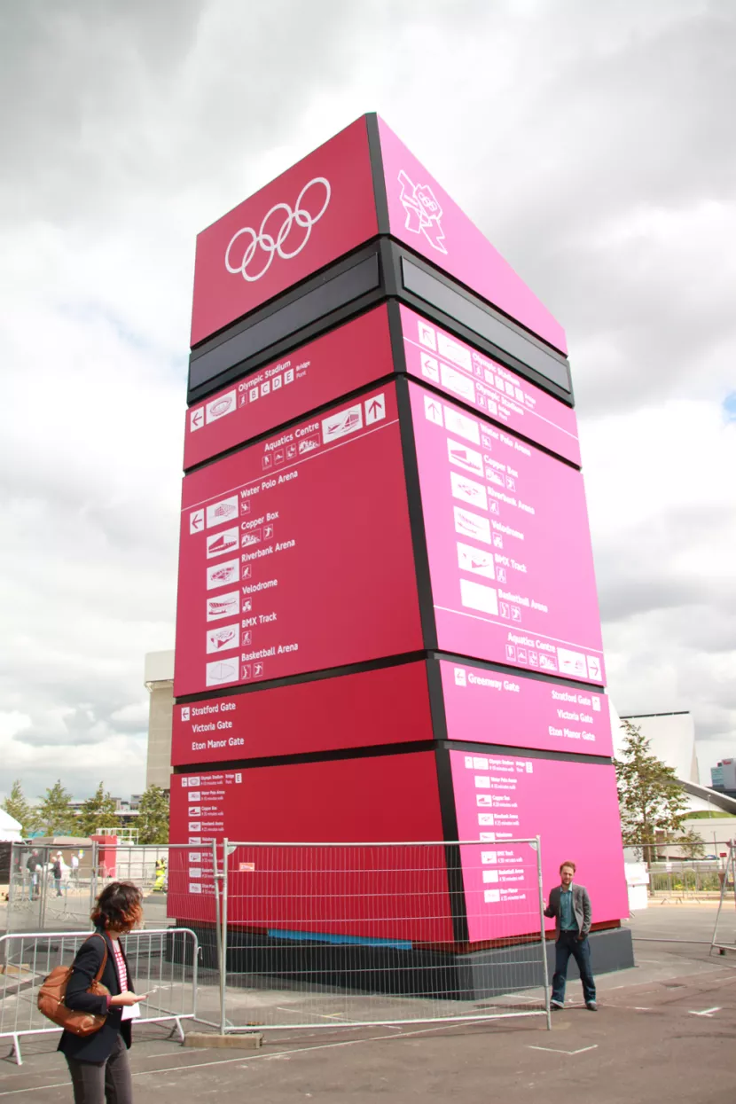 This project for the London 2012 Olympics included creating wayfinding beacons across the Olympic Park and entry gantries welcoming visitors to the Games.