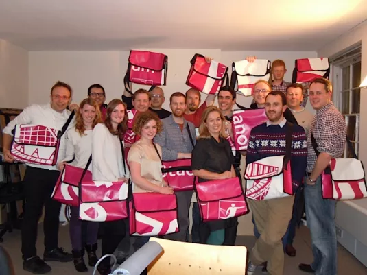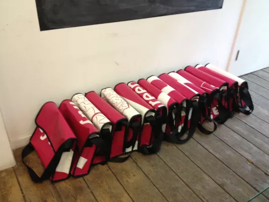 After the Olympic Games, Momentum reused many of the gantry printed-fabric skins to make robust and durable courier bags.