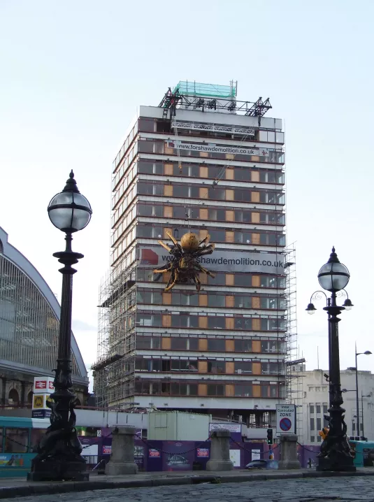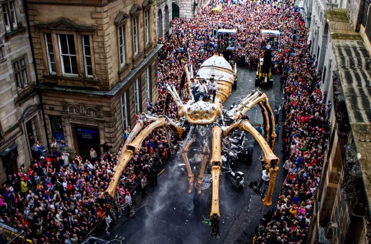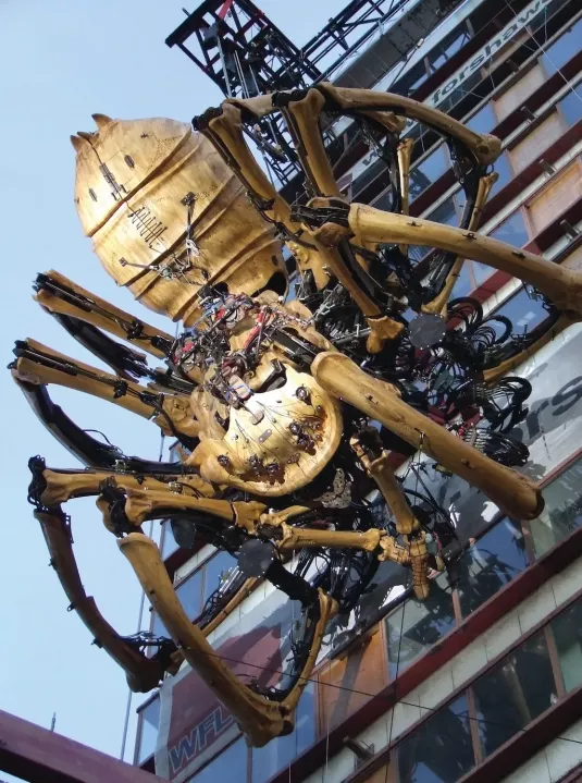 A mechanical spider operated by a number of performers positioned within its frame. Brought to Liverpool by French performence art company La Machine for the celebrations of European Capital of Culture.